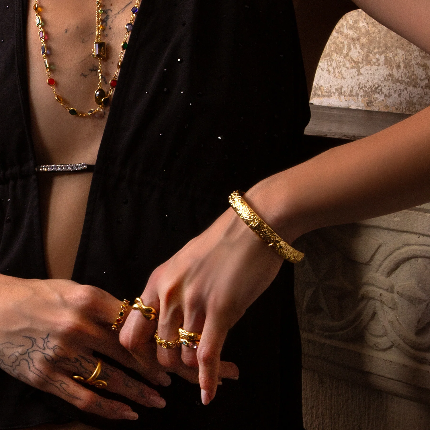 Iced Evil Eye Outline Ring - 10mm - Gold